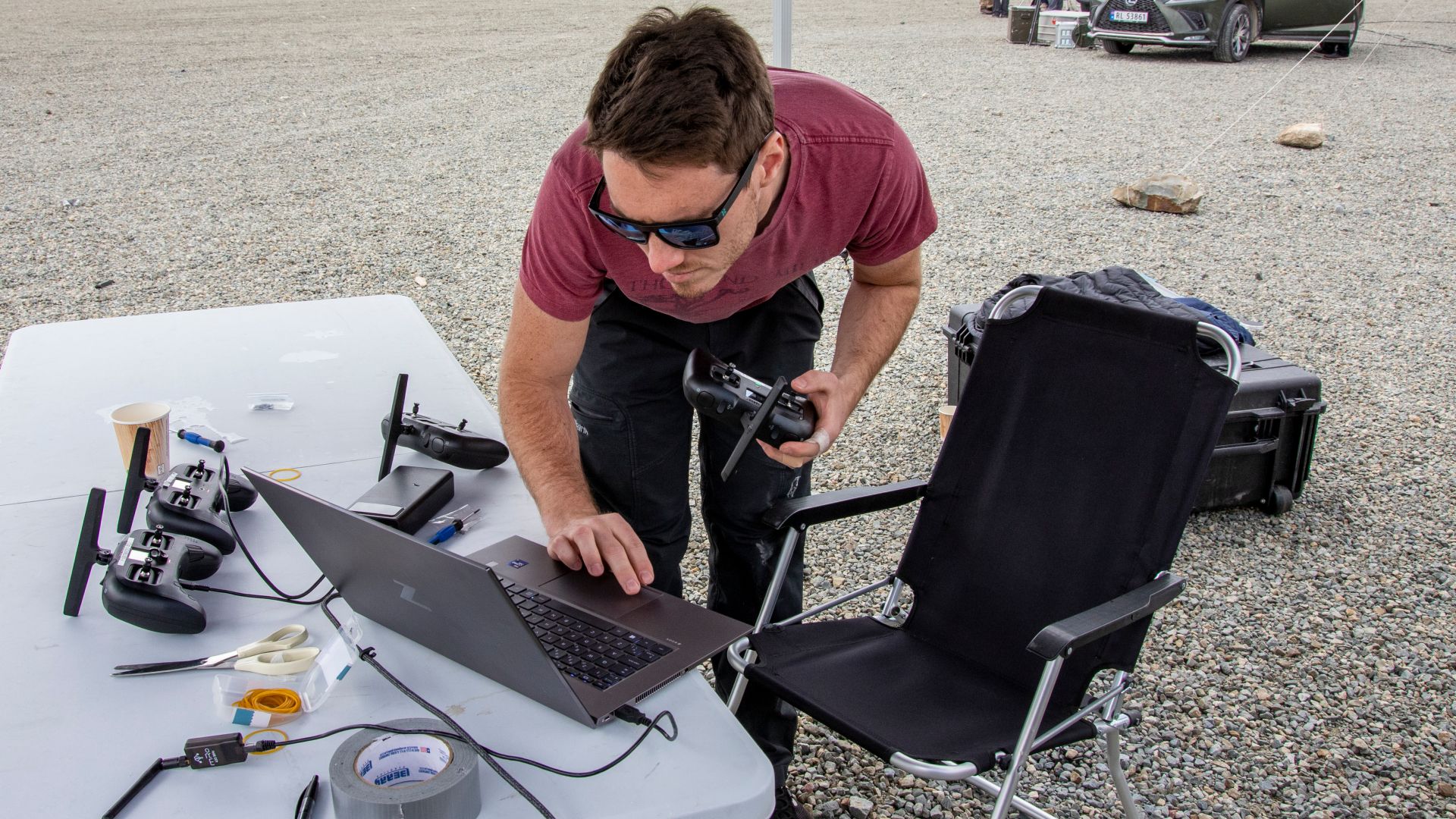 Akkurat nå beveger sju droner seg sammen over en enorm grusslette nord for Rena. Området kalles bare PFA-sletta, en forkortelse for «Prøve- og forsøksanlegg». Sletta er så stor at du nesten tror du ser jordkrumningen når du står der.
