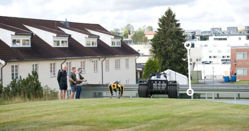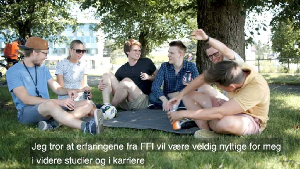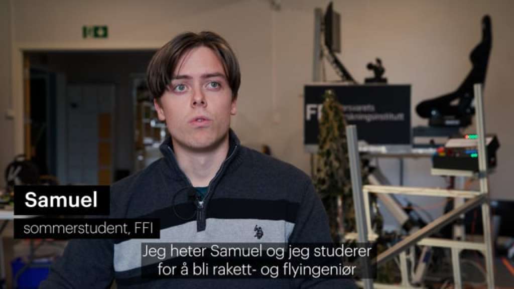 Tre sommerstudenter uttaler seg om å jobbe med en UGV - Unmanned Ground Vehicle i FFI-messa på Kjeller.