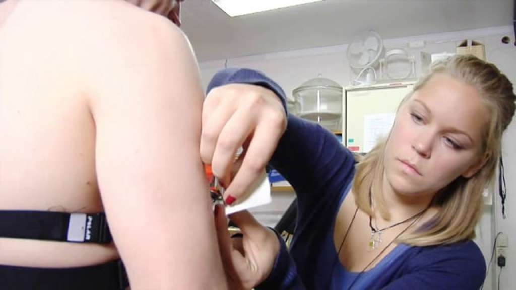 Silje tester nye uniformer i et regnforsøk, og Sindre er testperson. Fungerer uniformen godt nok i dårlig vær? Sindre går på tredemølle i et kaldt kammer med mye regn og vind, og Silje sørger for at forsøket går som det skal.